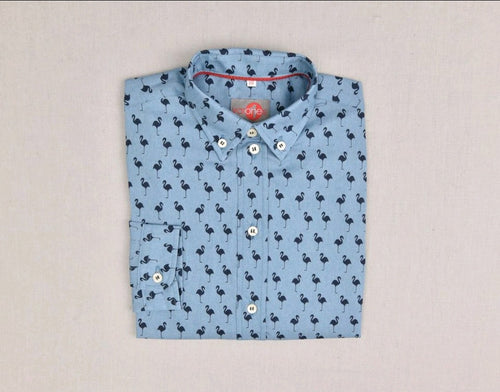 SALE One Varones Boys Shirt - Blue Flamingos