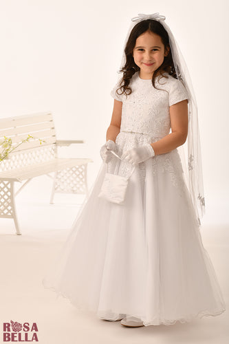 Rosa Bella By Sweetie Pie Girls White Communion Dress:- RB299